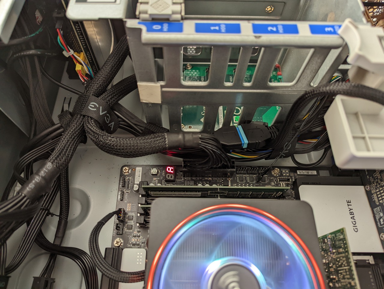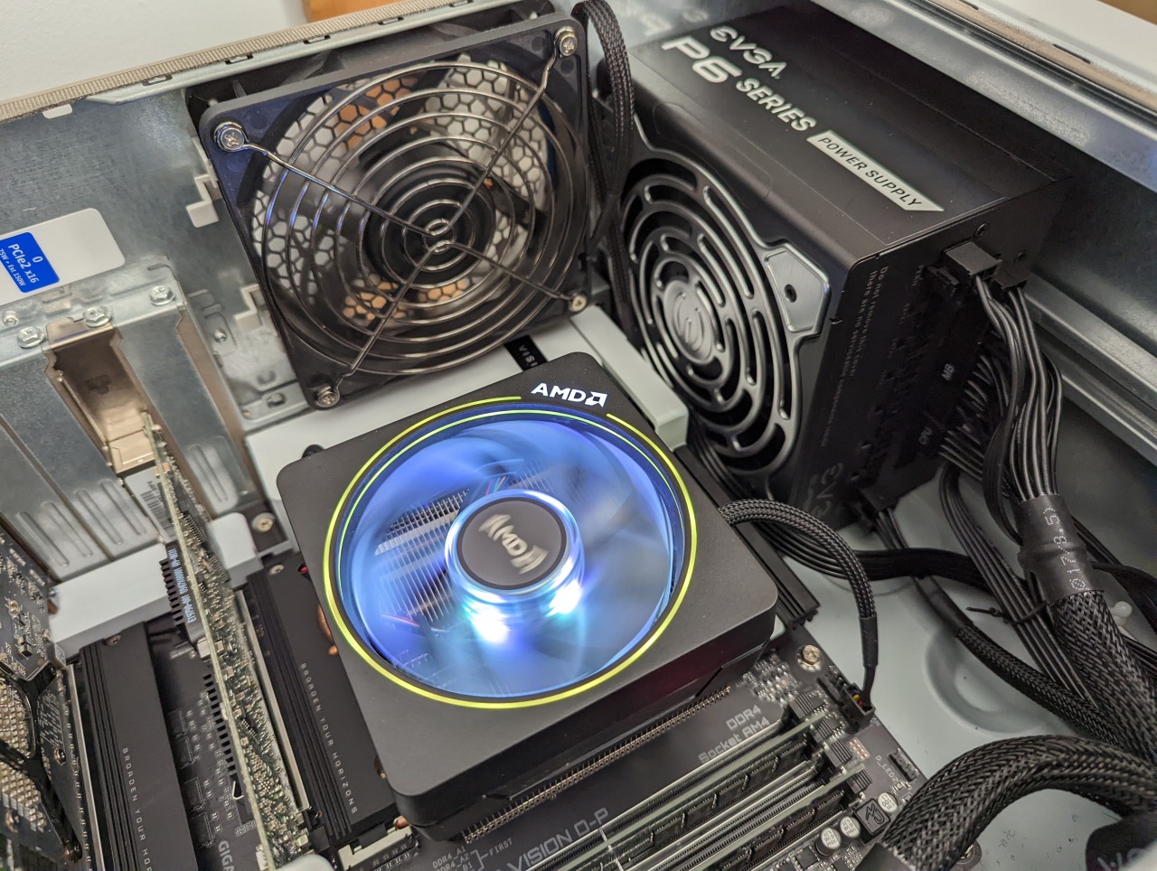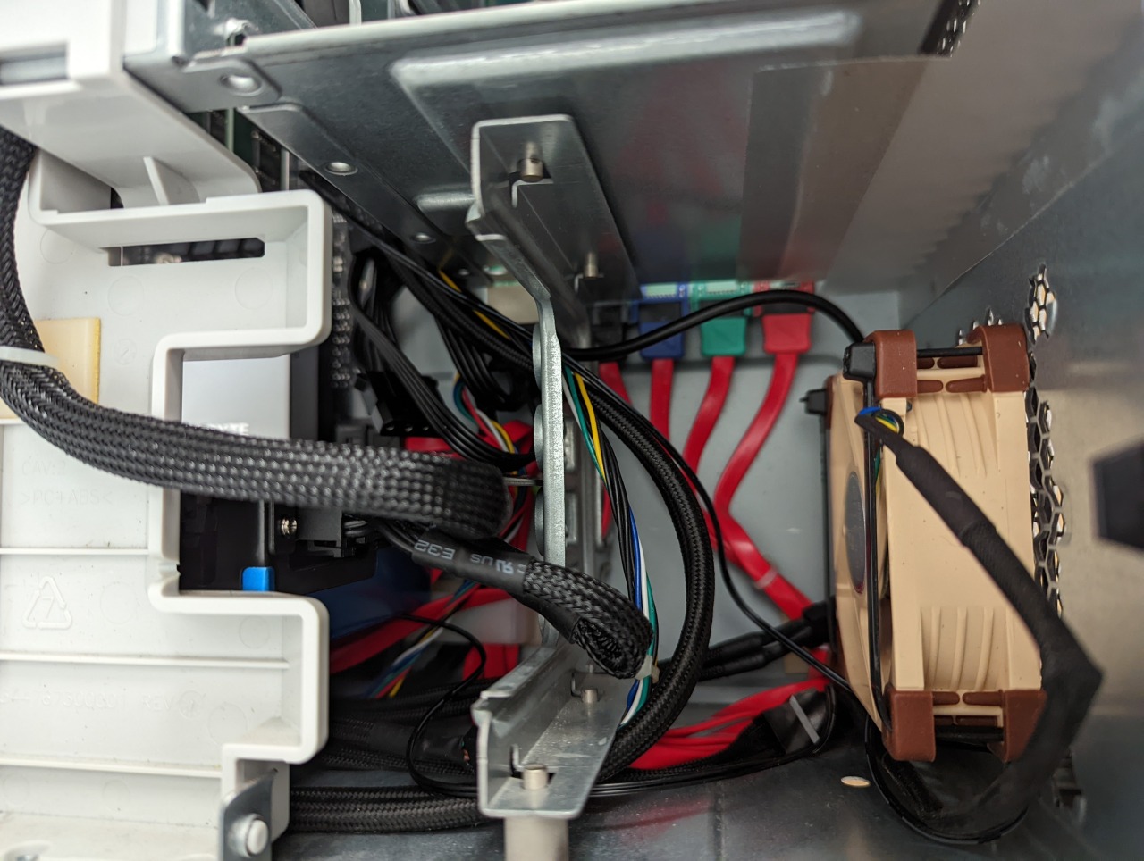 I didn’t have the correct size fan for the front so I just zip tied it on.